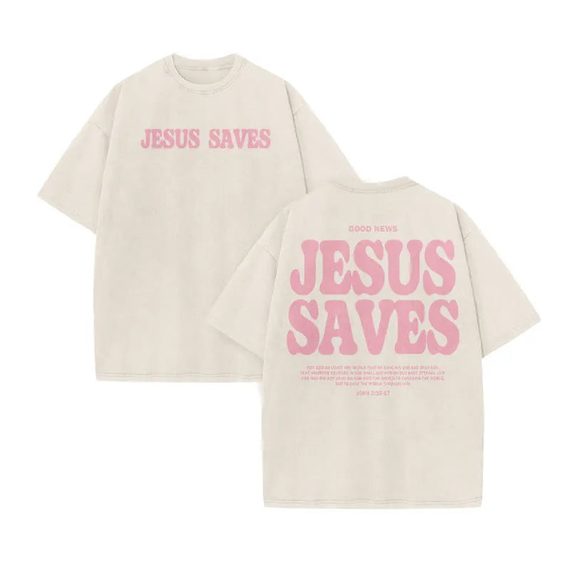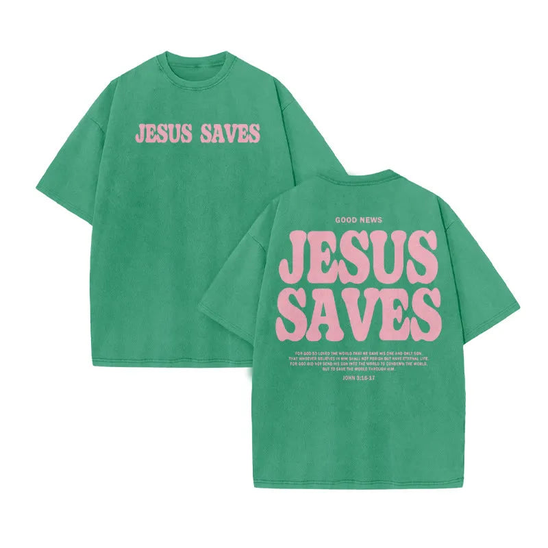 Unisex Jesus Saves Print Acid Washed T-shirt