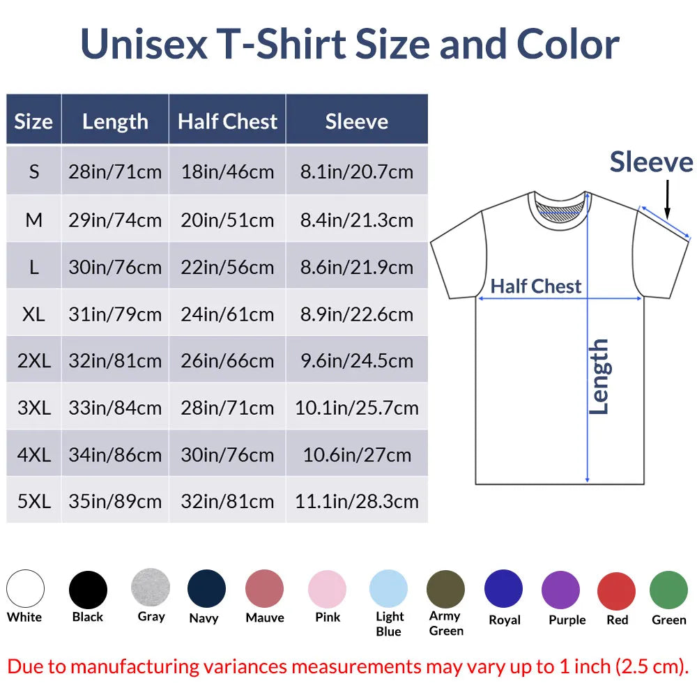 Please refer to the detailed size measurements below to select the best fit. All figures are based on flat garment measurements from the T-Shirt size charts you provided. Please allow for a 1-3 cm (0.4–1.2 inch) margin of error.
